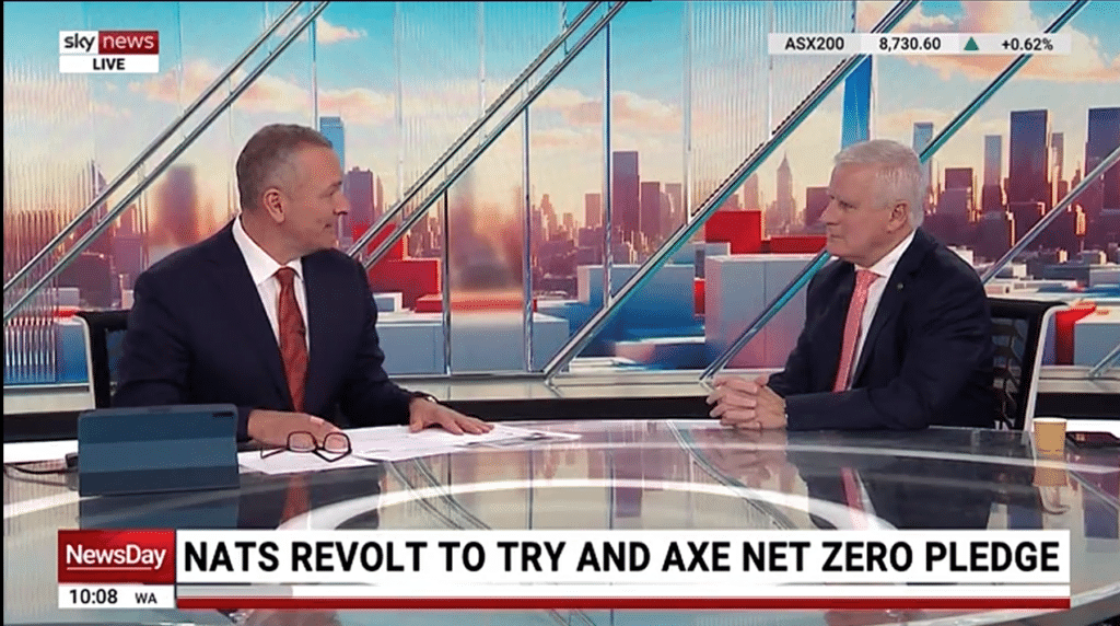 Subjects: Net zero E&OE STARTS: 12.08pm ENDS: 12.15pm KIERAN GILBERT Let’s bring in the ormer Deputy Prime Minister now, Michael McCormack, who has caused a bit of a stir today. Thanks for your time. MICHAEL McCORMACK Pleasure Kieran. KIERAN GILBERT It’s not making it easy for Sussan Ley, you and Barnaby Joyce. MICHAEL McCORMACK Nobody has been more supportive of Sussan Ley than me. I think, she’s going to do a great job, and … KIERAN GILBERT […]